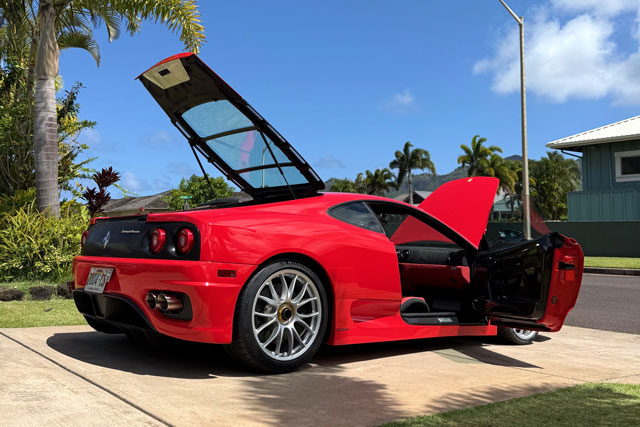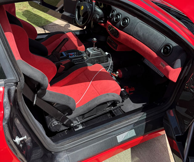 Lexan windows: No Radio: Yes Rollbar: No Fire extinguisher: Yes Additional info: converted to 6-speed manual (Modena Lucerna conversion), Trevor360 ECU tune, Tubi headers, Kline exhaust, F430 Challenge centerlocks, black calipers, racing seats large, Michigan plates BVA8029 (in 2009), Michigan plates DUL7907, Hawaii plates 2004CS |