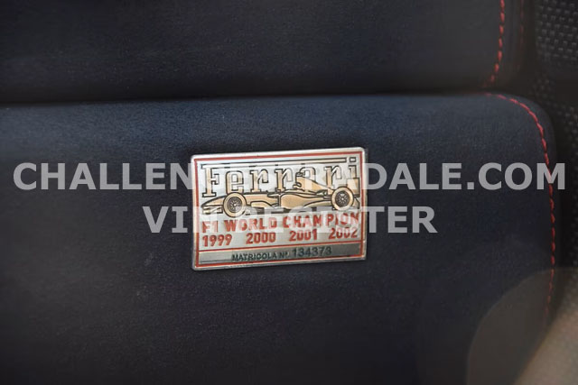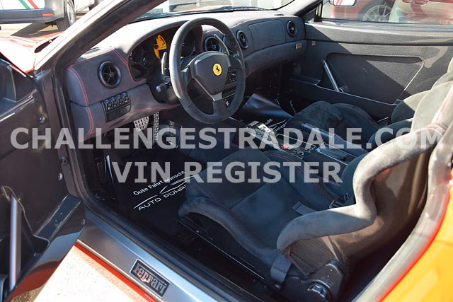 VIN: ZFFDT57B000134373 Year: 09/2003 Ext. color: Rosso Scuderia Int. color: Black alcantara Stripe: Yes (aftermarket) Shields: Yes |