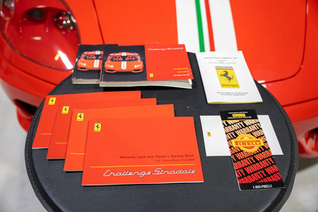 Lexan windows: No Radio: No Rollbar: No Fire extinguisher: Yes Additional info: black calipers, battery charger + prewiring, luggage set on window sticker (LUG5), sold new by Ferrari of San Diego (December 2003) |