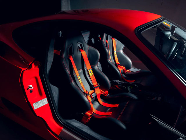 Lexan windows: No Radio: Yes Rollbar: No Fire extinguisher: No Additional info: red calipers, red 4-point racing harnesses, red stitching, black leather upperdash, full black leather steering wheel, leather under door sills, delivered new to Switzerland via Ferrari dealer Auto Pierre Sudan of Zug, The Tailored for Speed Collection |