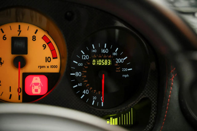 History 11/2025: SOLD, $493k (+ $7500 fees) (Bring A Trailer) 11/2025: AUCTION, 10583 miles (Bring A Trailer) 10/2025: $???, 10305+ miles (Wob Cars) 12/2024: NO SALE, high bid $282000 (Bring A Trailer) 12/2024: AUCTION, 10305 miles (Bring A Trailer) 09/2020: $225000, 8586 miles (Issimi) 09/2017: $219800, 8527 miles (Ferrari Newport) 01/2017: $239900, 8527 miles (Ferrari Newport) 11/2016: $284900, 8527 miles (Ferrari Newport) 09/2016: $285000, 8468 miles (Ferrari Newport) 04/2015: $225999, 8018 miles (CNC Motors) 02/2015: $209999, 8018 miles (CNC Motors) 05/2014: $167500, ~8000 miles (Ferrari BH) 08/2013: $145000 BIN, 7095 miles (Ebay Motors) 08/2011: $144995, 6370 miles (DuPont Registry) |