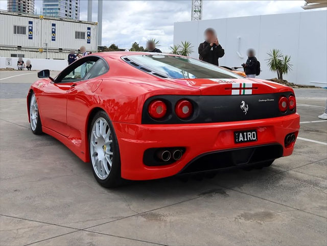 Lexan windows: No Radio: No Rollbar: No Fire extinguisher: No Additional info: red calipers, Larini exhaust, black 4-point harnesses, registration date (January 20, 2005), owned by Singapore's Ferrari President Mr Lung in Singapore, Singapore plates SBC1H, Australia (NWS) plates 360-FCS, Australia (Victoria) plates AIRO |