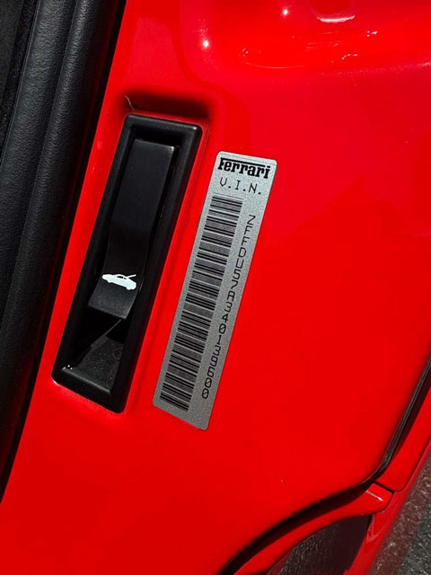 VIN: ZFFDU57A340139600 Model Year: 2004 Ext. color: Rosso Scuderia Int. color: Red-black alcantara Stripe: Yes (factory) Shields: Yes |