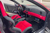 Lexan windows: No Radio: No Rollbar: No Fire extinguisher: No Additional info: black calipers, black 4-point racing harnesses |