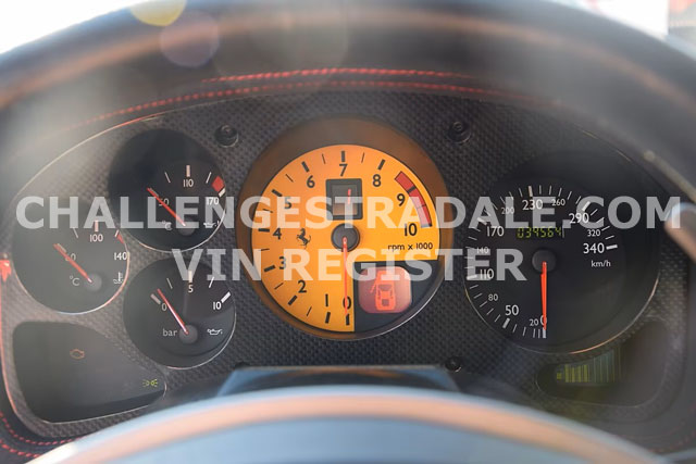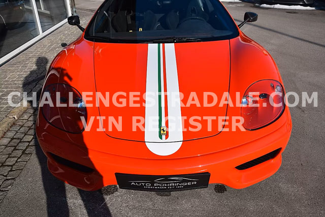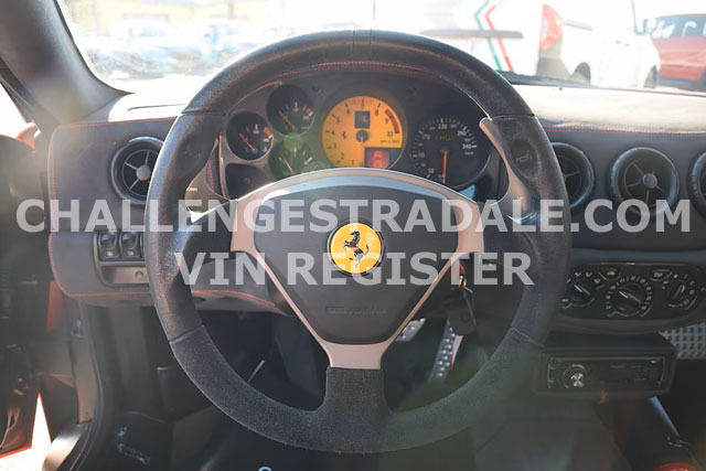 VIN: ZFFDT57B000134373 Year: 09/2003 Ext. color: Rosso Scuderia Int. color: Black alcantara Stripe: Yes (aftermarket) Shields: Yes |