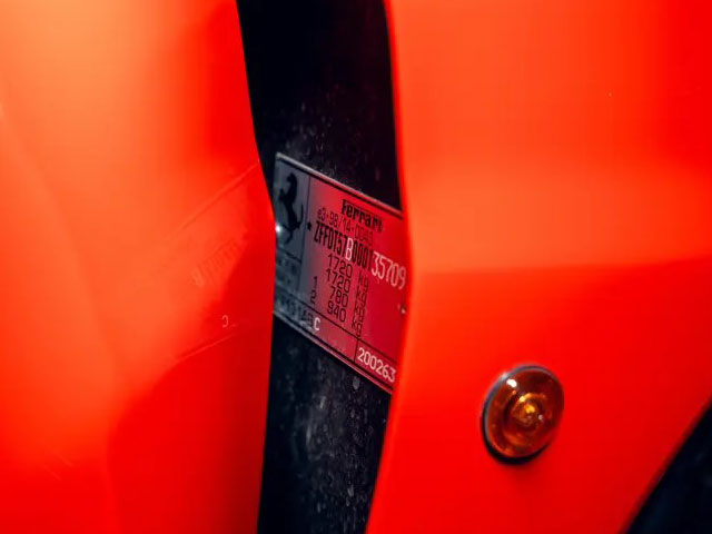 VIN: ZFFDT57B000135709 Year: 2004 Ext. color: Rosso Scuderia Int. color: Black leather Stripe: No Shields: Yes |