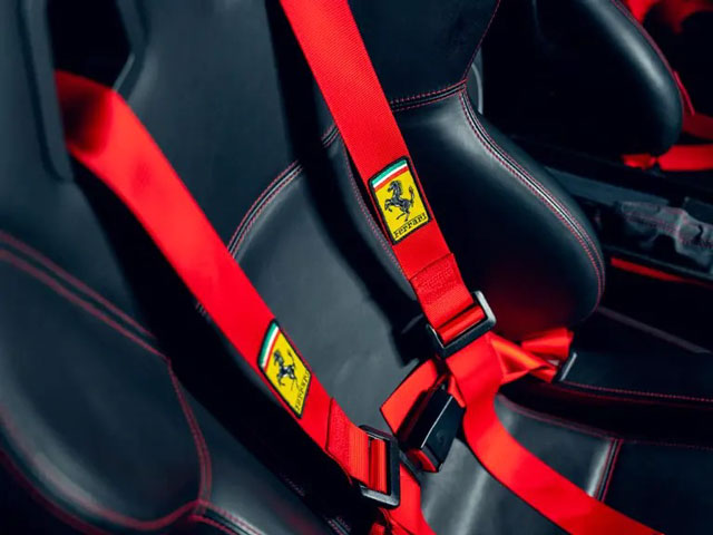 Lexan windows: No Radio: Yes Rollbar: No Fire extinguisher: No Additional info: red calipers, red 4-point racing harnesses, red stitching, black leather upperdash, full black leather steering wheel, leather under door sills, delivered new to Switzerland via Ferrari dealer Auto Pierre Sudan of Zug, The Tailored for Speed Collection |