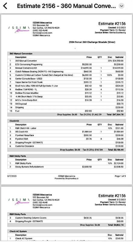 History 11/2025: SOLD, $493k (+ $7500 fees) (Bring A Trailer) 11/2025: AUCTION, 10583 miles (Bring A Trailer) 10/2025: $???, 10305+ miles (Wob Cars) 12/2024: NO SALE, high bid $282000 (Bring A Trailer) 12/2024: AUCTION, 10305 miles (Bring A Trailer) 09/2020: $225000, 8586 miles (Issimi) 09/2017: $219800, 8527 miles (Ferrari Newport) 01/2017: $239900, 8527 miles (Ferrari Newport) 11/2016: $284900, 8527 miles (Ferrari Newport) 09/2016: $285000, 8468 miles (Ferrari Newport) 04/2015: $225999, 8018 miles (CNC Motors) 02/2015: $209999, 8018 miles (CNC Motors) 05/2014: $167500, ~8000 miles (Ferrari BH) 08/2013: $145000 BIN, 7095 miles (Ebay Motors) 08/2011: $144995, 6370 miles (DuPont Registry) |